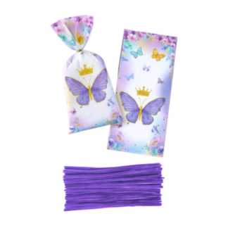 Purple Butterfly Party Bags With Twist Tie And Chenille Stems (Set of 25)