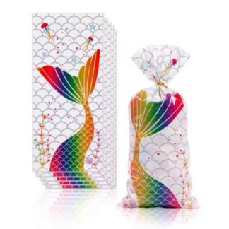 Rainbow Mermaid Tail Party Favor Bags With Twist Tie & Chenille – Set of 25
