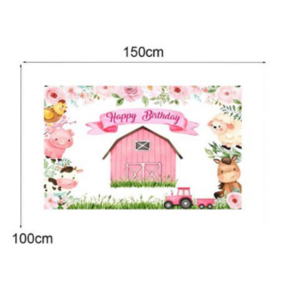 Small Kids Birthday Party Table and Photography Backdrop (Trees Barn Farm) – Pink