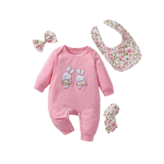 Baby Girl Long Sleeve Onesie Set, Pink Floral & Bunnies – 3-6 months