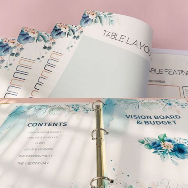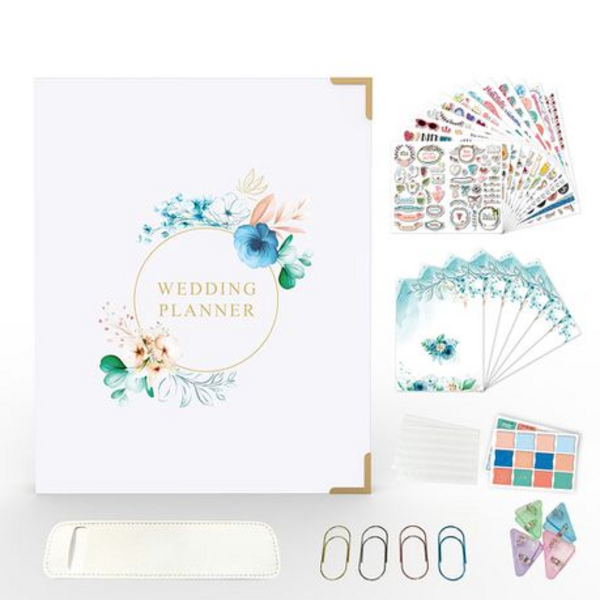 The set includes various categorized pages, fun stickers and other organizational tools to help you plan the perfect wedding.