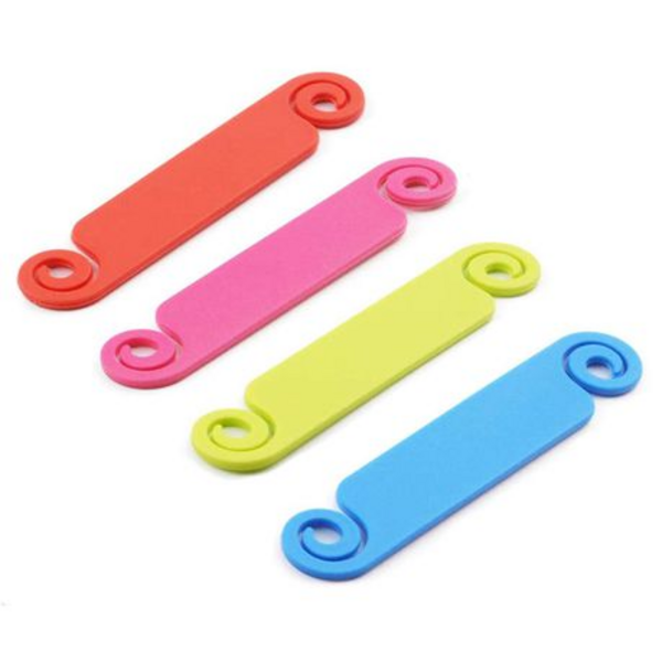 Set of 10 plastic cable organizer tags.