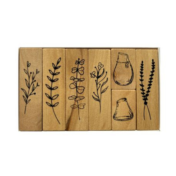 Decorative Rubber Stamp Set (Leaves and Bottles)
