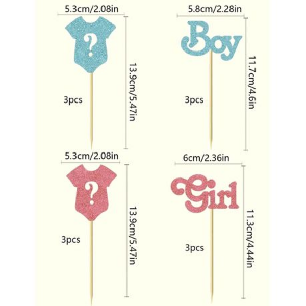 These Pink and Blue glitter gender-reveal cupcake toppers are a fun way to decorate cupcakes for a gender-reveal party.