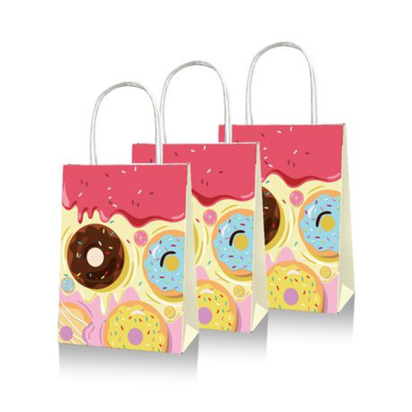 Party Favor Bags with Handles – Donut Candy Theme – 12 Bags