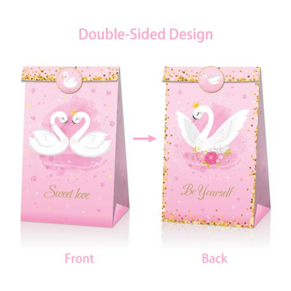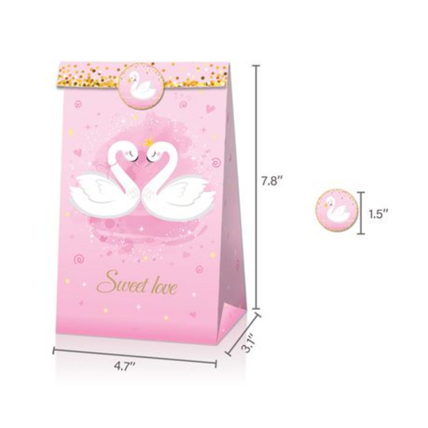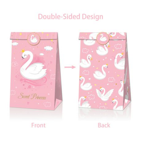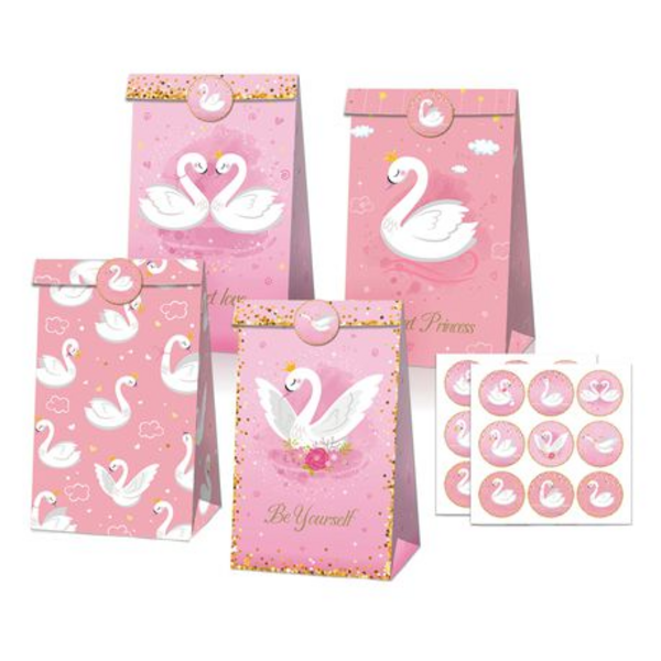Party Favor Bags with Stickers – Swan Princess Theme (12 Bags)