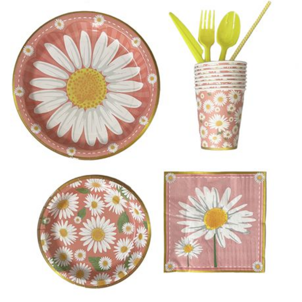 Party Paper Tableware / Cutlery Set – Daisy Flower Theme (Set of 8)