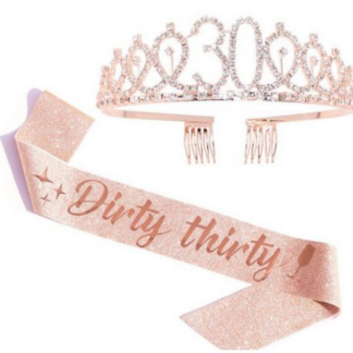30th Birhtday Adult Sash and Crown Party Set – Rose Gold